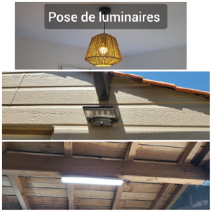 En électricité, j’installe vos luminaires intérieurs et extérieurs, la pose et/ou le remplacement de radiateurs, l’échange d’anciens appareillages électriques comme les interrupteurs ou les prises. Je vous propose l’installation de stores, la pose de parquets et de lambris, de boite aux lettres, de gouttières, d’étagères, de tableaux ou d’éléments de décoration. Je peux réaliser vos aménagements de placards et la pose des portes coulissantes. Je nettoie vos gouttières et vos tuyaux de descentes d’eau de pluie, le nettoyage haute pression (Karcher) de vos terrasses, de vos murs, de clôtures ou de maison, de vos portails…J’applique sur votre toiture et/ou sur vos murs un anti-mousse pour la destruction des algues rouges, des mousses et lichens.