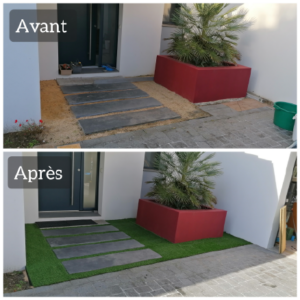 Côté jardin : j’entretiens vos extérieurs par la tonte de votre pelouse, la taille des haies, d’arbustes, de rosiers, l’aménagement de parterres ou la pose de bordures, de gazons synthétiques. Si vous le souhaitez, j’évacue tous vos déchets verts en déchetterie.